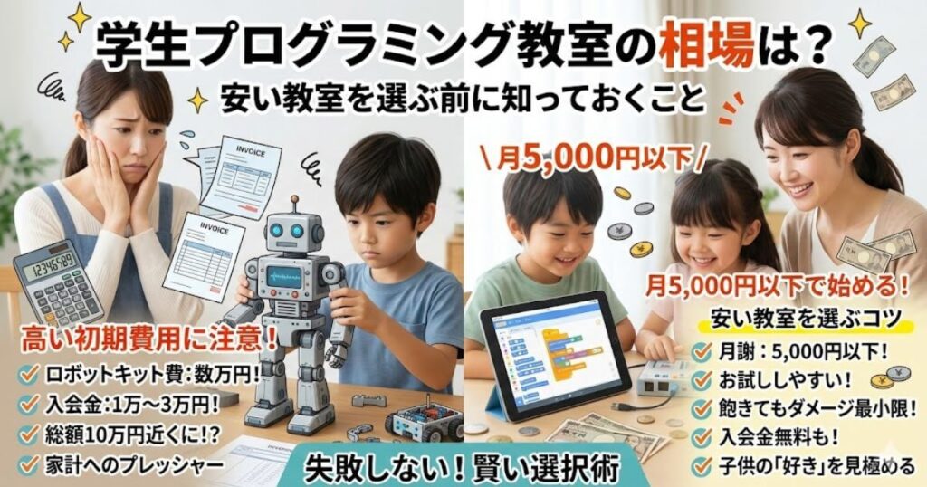 実際のところ、プログラミング教室は他の習い事に比べても「月謝が高い」のが現実ですね。